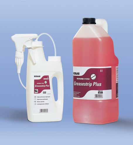 2) Laisser agir GREASESTRIP PLUS quelques minutes pour laisser pénétrer dans les dépôts de graisse. Ne pas laisser sécher les surfaces.