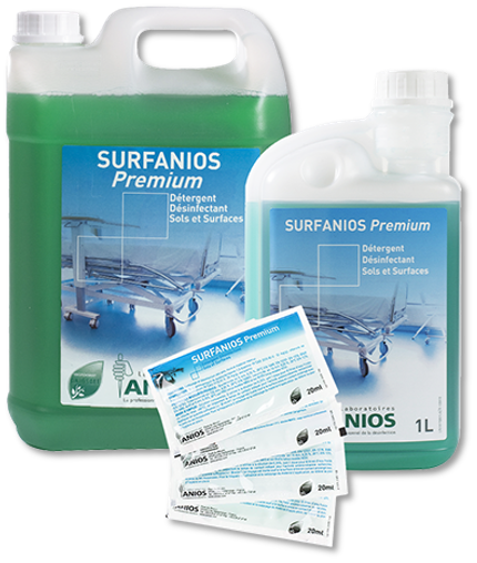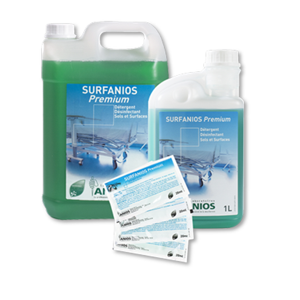 Double action : action détergente et désinfectante. Produit sans aldéhyde.